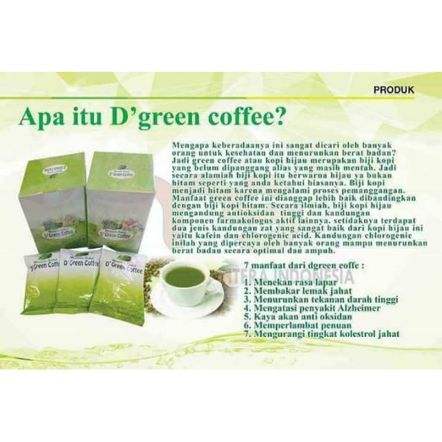 Setiap minum 1 gelas D'Green Coffee diimbangi dengan minum air 3 gelas untuk membantu proses penurunan berat badan