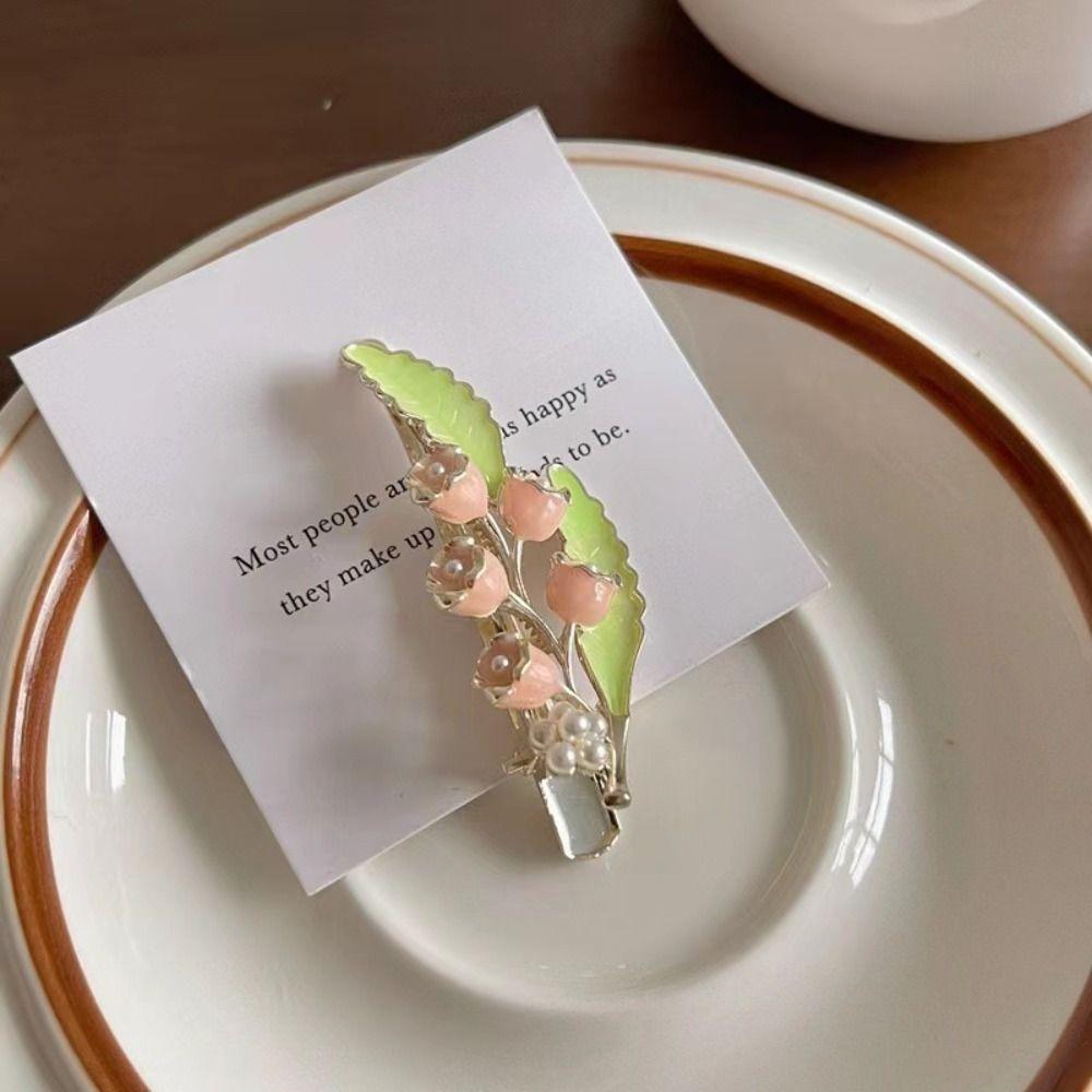 Green Flower Hairpin Pink Tulip Hair Clip Jewelry Pearl Barrettes Girls Tulip&Pearl