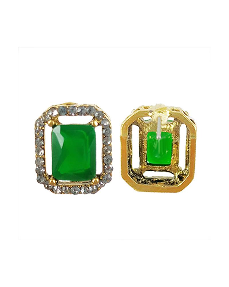 Green Square Rhinestone Stud Earrings