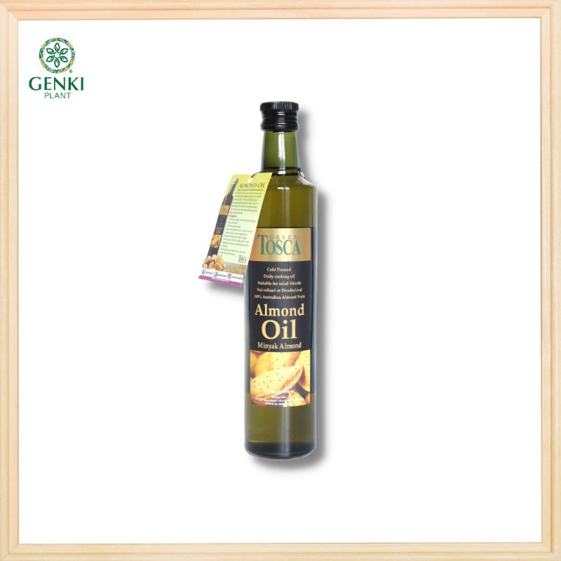 Green Tosca Cold Pressed Almond Oil dihasilkan dari kacang almond manis asal Australia yang diperas pada suhu rendah (cold pressed). Karena dihasilkan dari perasan pertama (extra virgin), seluruh cita rasa unik, warna kuning keemasan, aroma almond, serta kandungan gizinya tetap dipertahankan. Green Tosca Cold Pressed Almond Oil memiliki warna cerah dan hampir tidak berbau, namun memiliki cita rasa yang manis dan lembut. Almond oil memiliki titik didih tinggi 216°C baik digunakan untuk menggoreng (pan friying). Green Tosca Cold Pressed Almond Oil kaya akan vitamin E, D, B2, B6, A dan telah lama dikenal juga mengandung berbagai mineral penting bagi tubuh seperti magnesium, kalsium, dan asam lemak omega 6, dan omega 9 yang bermanfaat untuk jantung, otak, syaraf, dan sistem hormon.