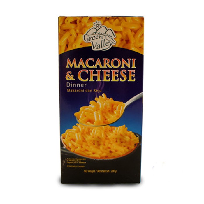 Green Valley Macaroni and Cheese [200 gr/ 2 Pcs] adalah macaroni yang memiliki tekstur kenyal dengan citarasa kejunya yang nikmat. Makanan instan ini ideal dinikmati untuk menemani saat santai Anda bersama keluarga. Original from USA.