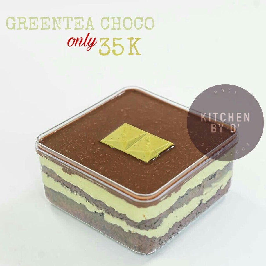 Base cake coklat yang tidak terlalu manis dan cream greentea yang lembut sehingga Dessert Box Kitchen By D' tidak membosankan saat dikonsumsi.