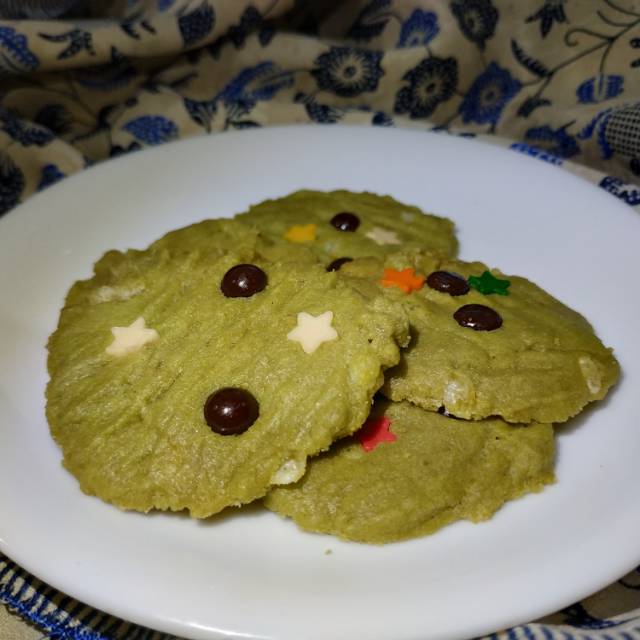 Kue kering dengan rasa greentea serta campuran rice crispy dan choco chips.