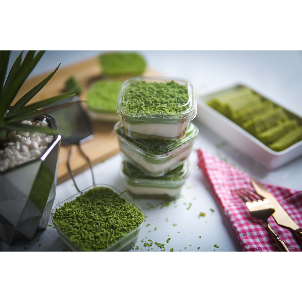 dessert dengan lapisan greentea brownie, cream cheese dan greentea ganache