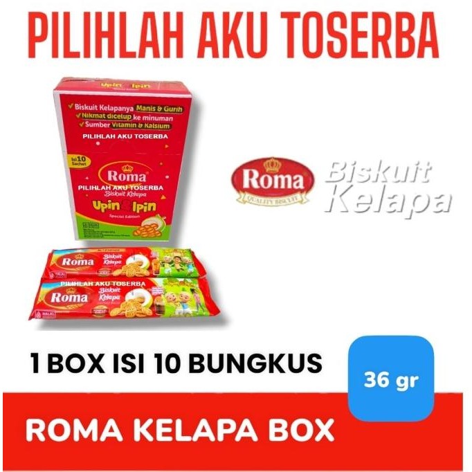 Roma Kelapa merupakan biskuit yang dibuat dari kelapa segar pilihan. Biskuit ini dilengkapi dengan sumber vitamin dan kalsium yang dapat menutrisi tubuh Anda. Nikmati biskuit bersama teh di sore hari dapat mencerahkan hari Anda.