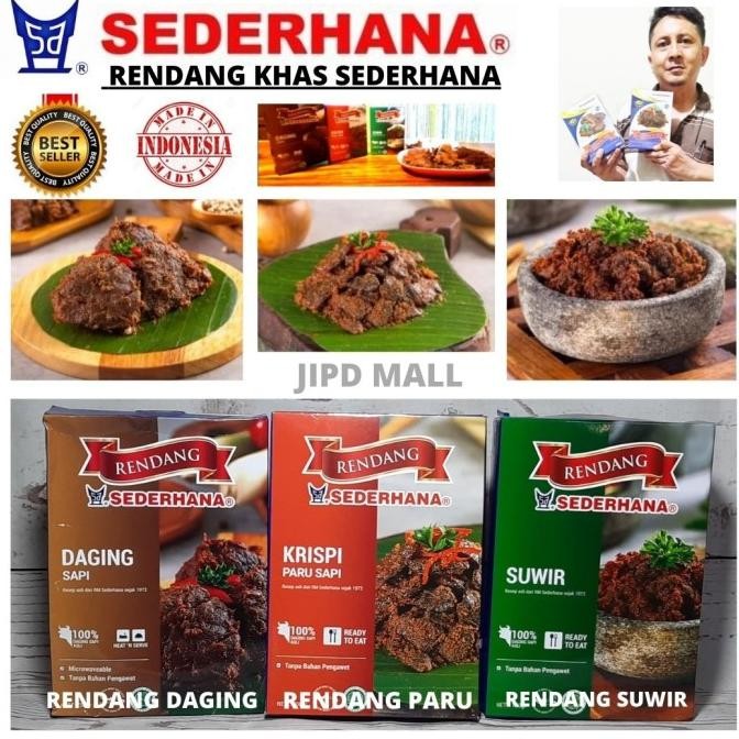 Hampir semua orang yang tinggal di Indonesia mengenal rendang. Masakan daging dengan bumbu rempah-rempah ini begitu banyak disukai oleh berbagai kalangan. Kini juga tersedia rendang siap saji yang cocok untuk bekal traveling yaitu Rendang Sederhana. Produk ini dibuat dari daging sapi pilihan dengan resep asli Restoran Sederhana yang terkenal sejak tahun 1972. Diolah secara trasional dengan cita rasa pedas, dibuat dengan berbagai macam bumbu dan rempah khas Minangkabau yang sekarang dapat dinikmati kapan dan dimana saja karena praktis dan mudah dibawa.