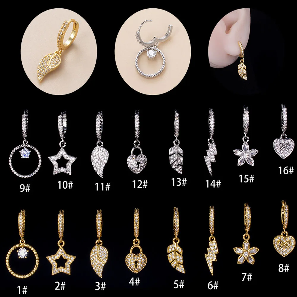 Guemcal 1 пара персональных любовных цветов крыла циркония кулон мульти-уха пирсинг одно ухо пирсинг наушники