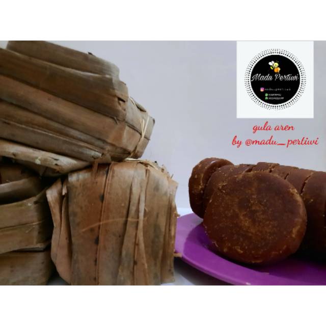 Gula dari nira pohon kawung yang di proses secara tradisional langsung dari petani. Di jamin gula aren asli sehingga tidak perlu di ragukan lagi. Di kemas dengan daun kelapa kering.