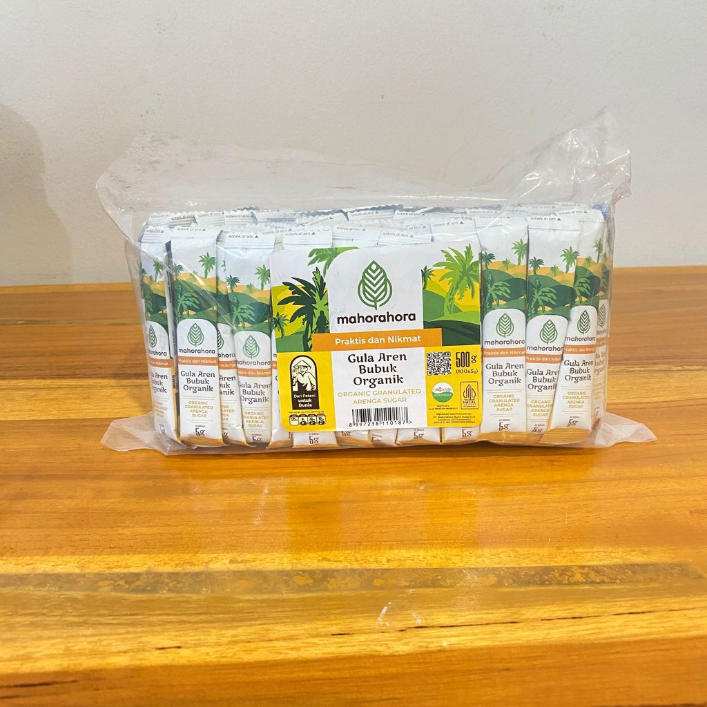 Mahorahora Gula Aren/Palm Sugar/Gula Semut Organik Bubuk Sachet 100 Pcs, Premium Rendah Kalori, Sertifikasi Organik Indonesia