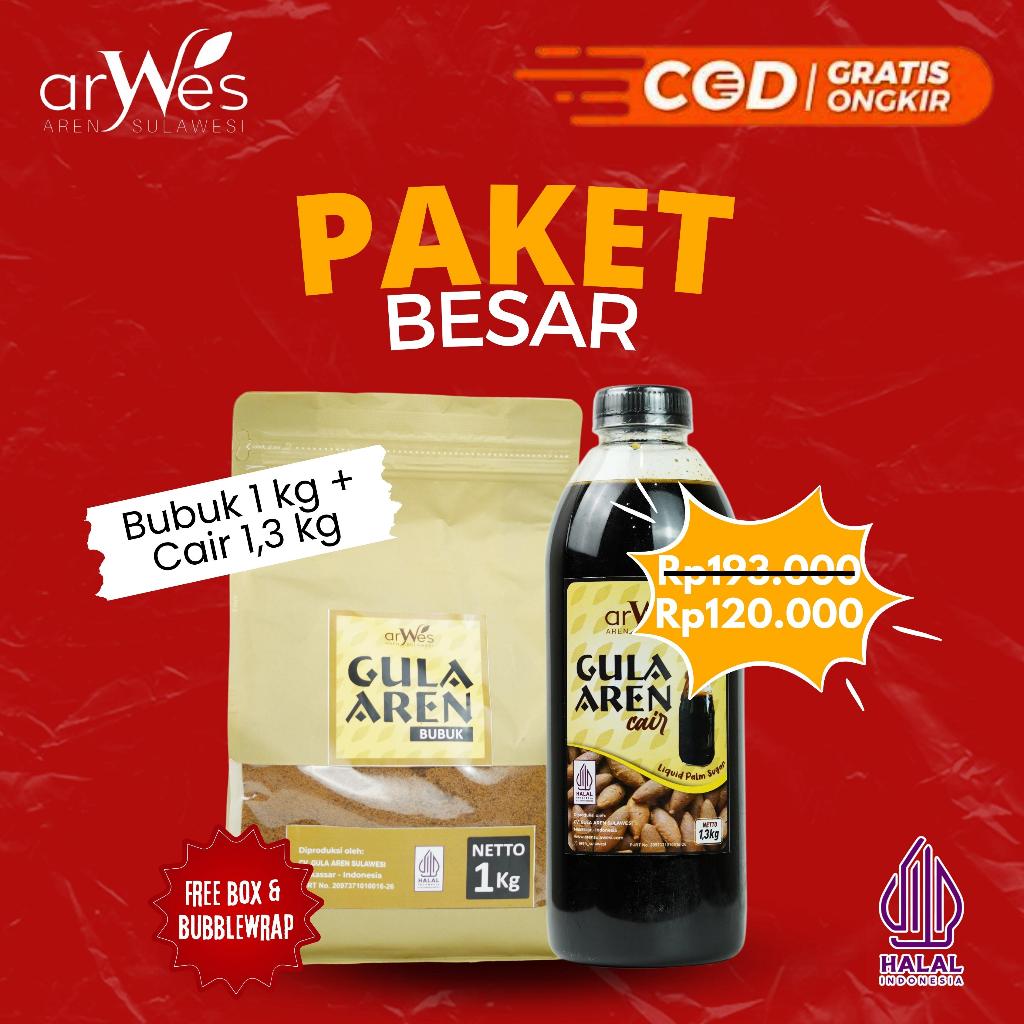 Paket Gula Aren Bubuk Semut 1kg dan Cair 1Lt Brown Sugar