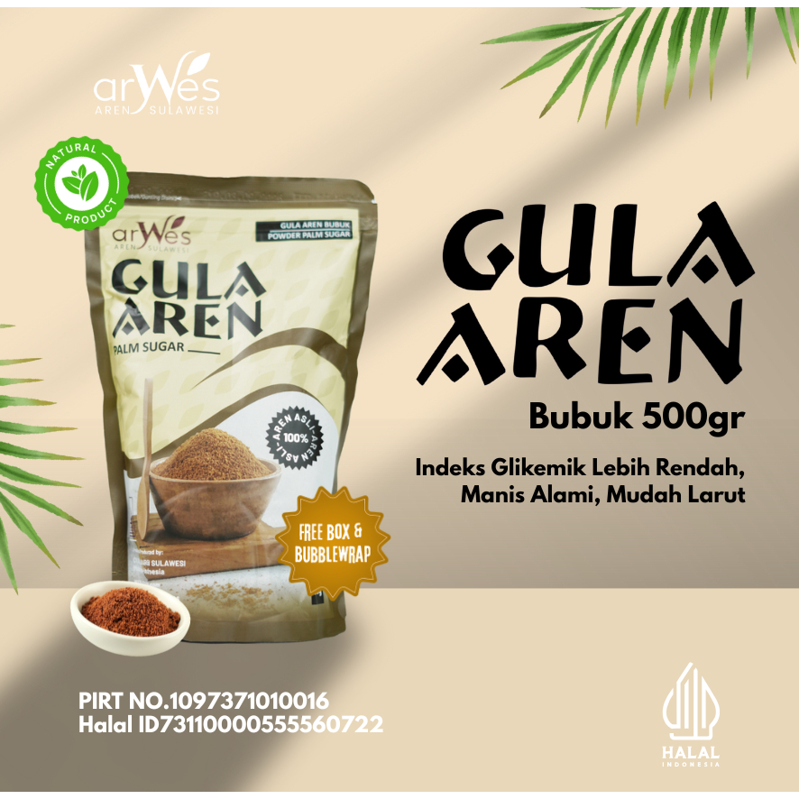Gula Aren Bubuk - Aren Sulawesi (ARWES) dapat digunakan sebagai Gula untuk Kopi, Gula untuk Teh, Gula untuk Kue, Gula untuk Roti