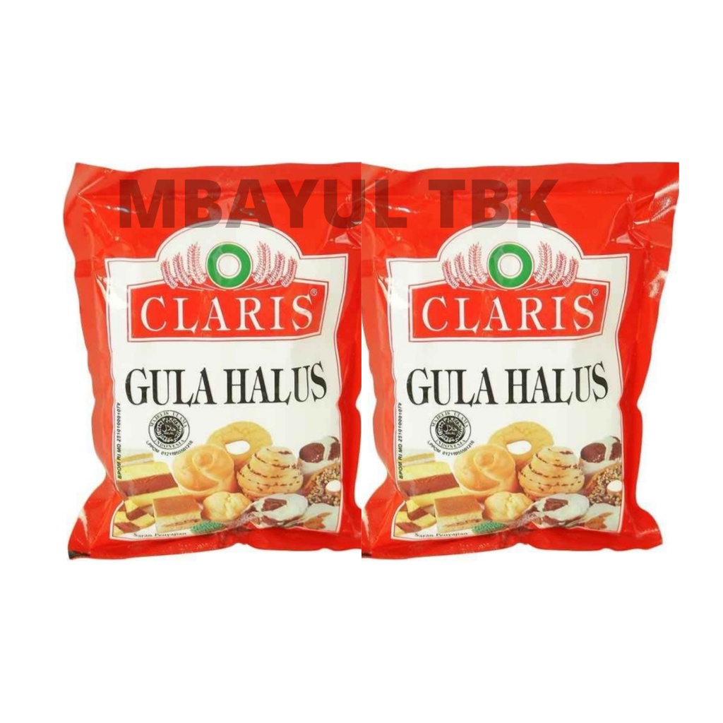 Gula halus claris kemasan 250gr, untuk membuat kue.