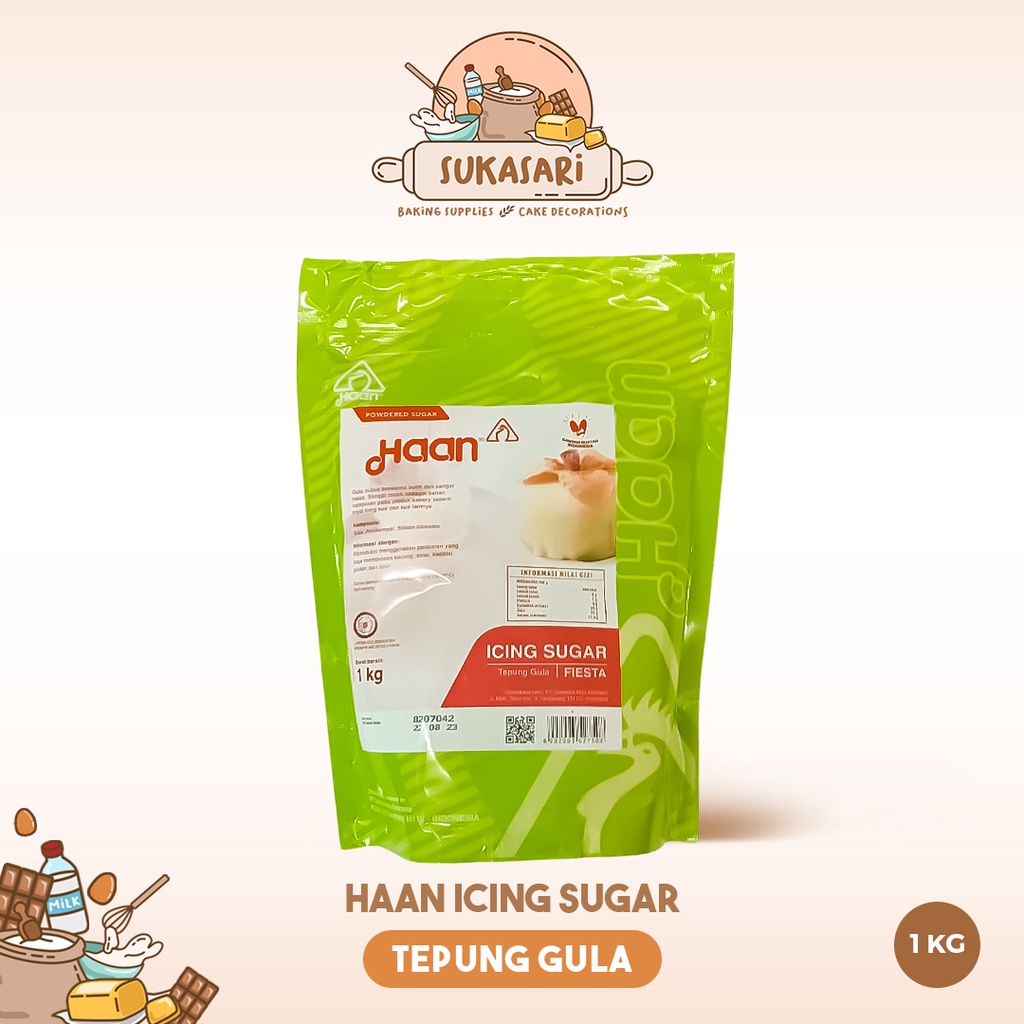 Gula Halus Haan adalah gula bubuk halus yang berwarna putih dan baik digunakan untuk royal icing kue pengantin dan bahan kue lainnya, hasilnya halus dan putih.