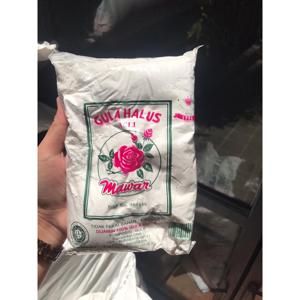 Gula halus yang biasa digunakan untuk membuat kue, kualitas yang bagus sehingga Gula Halus Mawar sudah terkenal sejak lama.