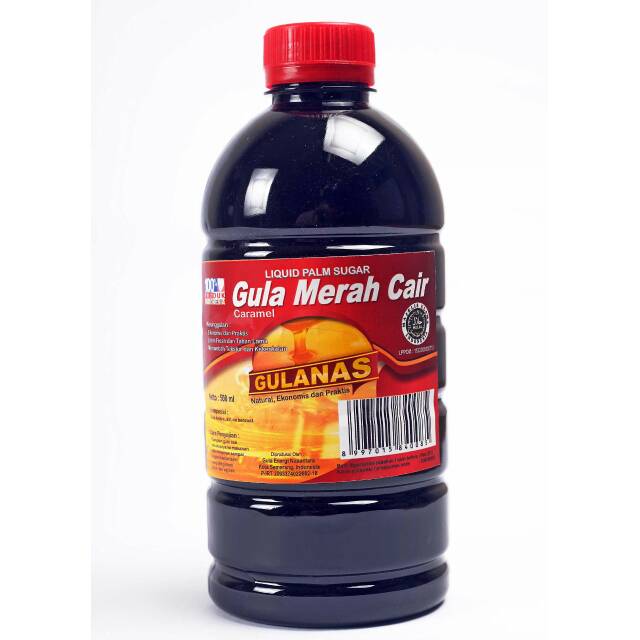 Gulanas Gula Merah Cair kemasan botol [500 ml] merupakan gula cair nira yang diolah melalui tahapan pemurnian tanpa bahan kimia dengan pengambilan kotoran yang terkandung di dalam nira tebu untuk diperoleh produk gula cair yang jauh lebih bersih dibanding gula kristal dan gula merah biasa sehingga memiliki nutrisi yang aman dikonsumsi. Produk gula merah cair ini sebagai pengganti gula merah tradisional maupun gula semut untuk konsumsi rumah tangga, industri kecil, restoran, hotel, dan lain sebagainya.