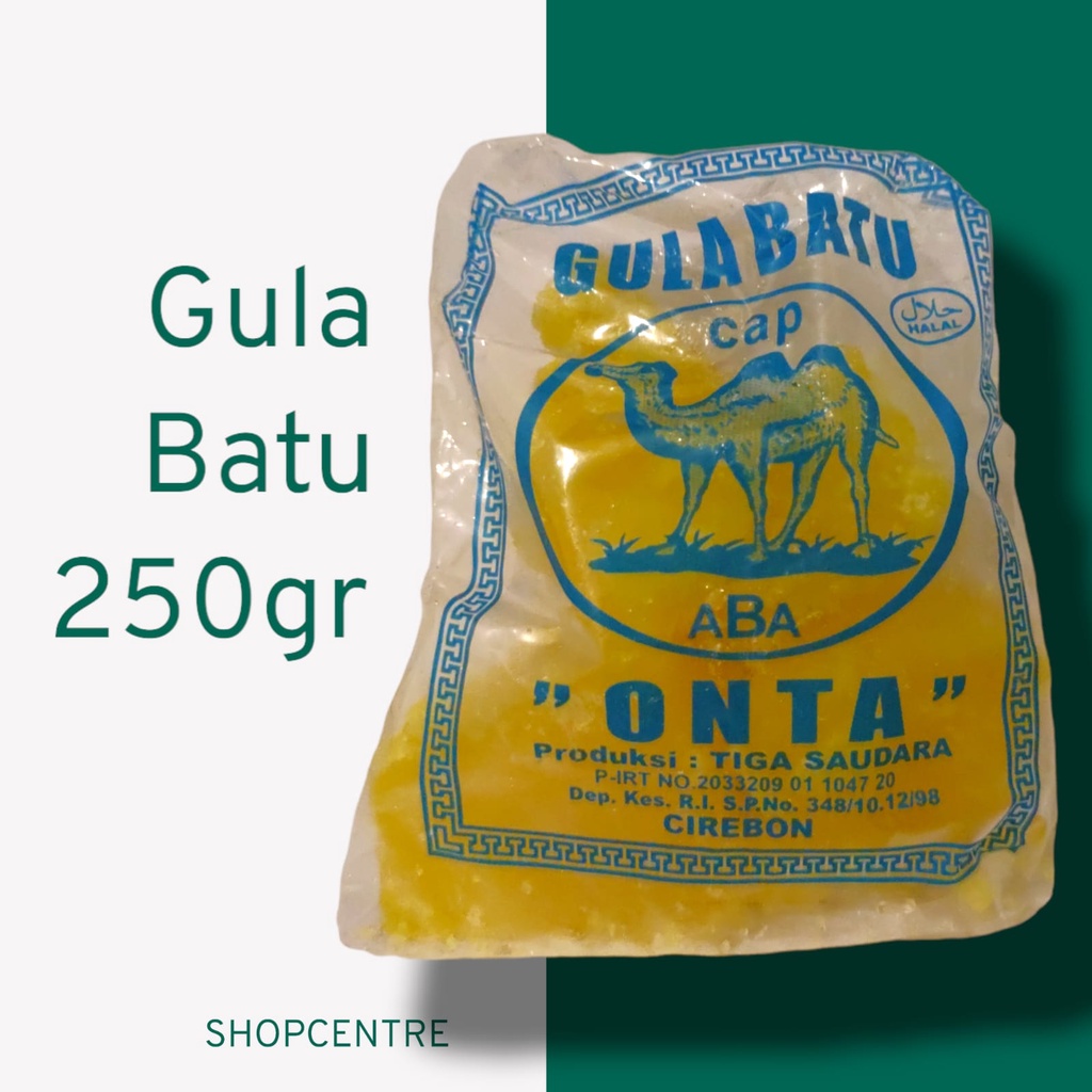 Gula batu Cap ONTA merupakan merek gula batu sari tebu murni asli khas Cirebon jawa barat. 1 kemasan -+ 250 gr (ada yang lebih ada yang kurang tapi tidak terlalu jauh)