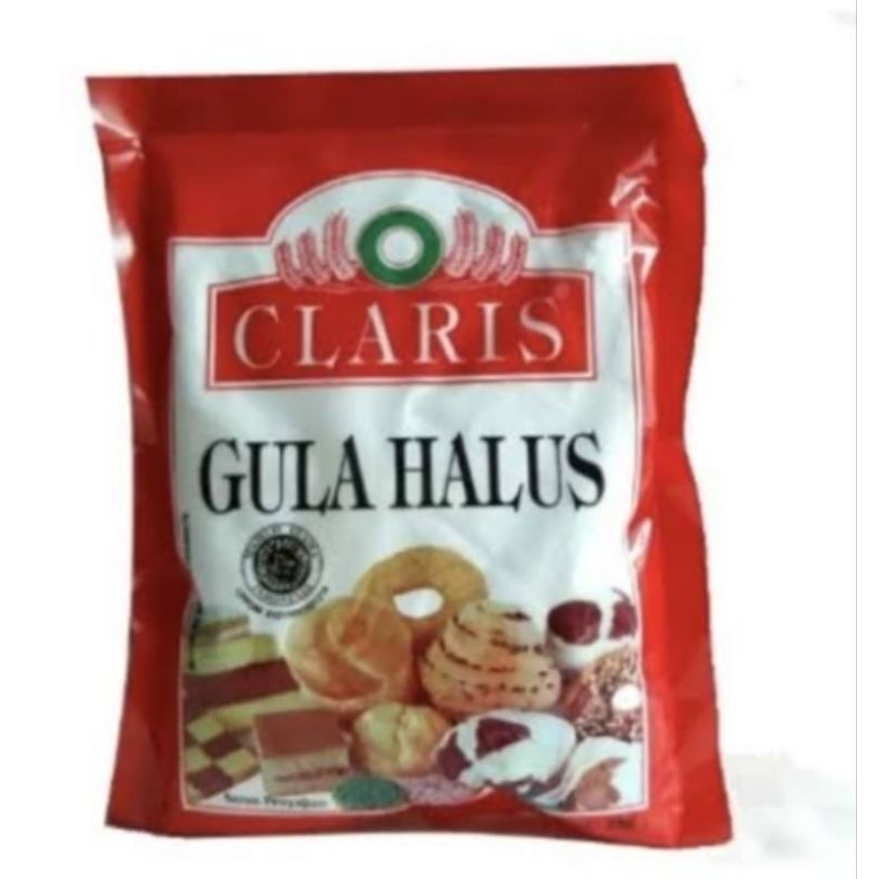 Kegunaan gula halus Claris merah Taburan untuk kue kering dan cake, Bahan dasar untuk membuat krim kue, Bahan adonan kue, Taburan donat, Bahan dasar untuk membuat minuman manis.