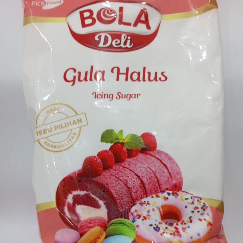 Bola Deli gula halus terbuat dari tebu pilihan berkualitas yg diproduksi dan dikemas dengan mutu yg baik. sangat cocok utk bahan dasar pembuatan kue, taburan pada kue, menambah rasa manis pada minuman