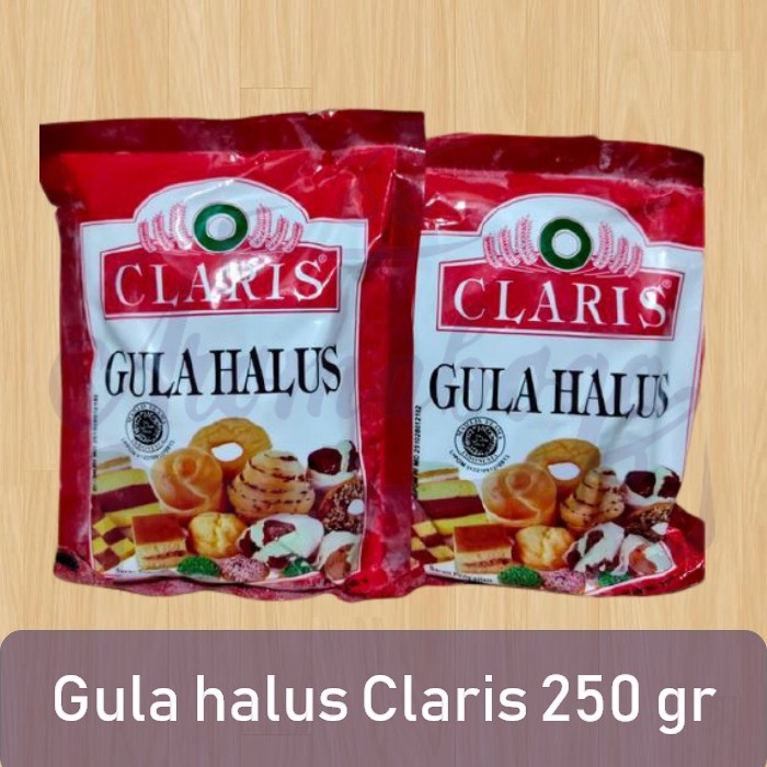 Gula halus claris 250gram berwarna putih bersih , Tekstur lembut, tidak mudah menggumpal.