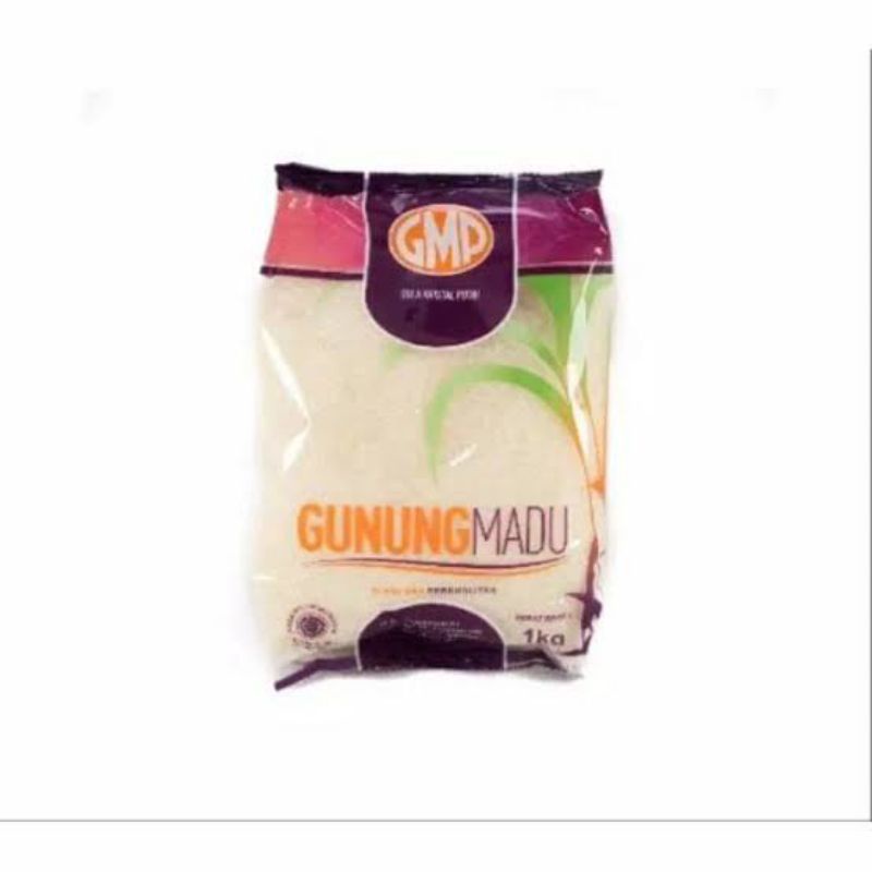 Gula pasir kemasan merk GUNUNG MADU berat 1 kg.