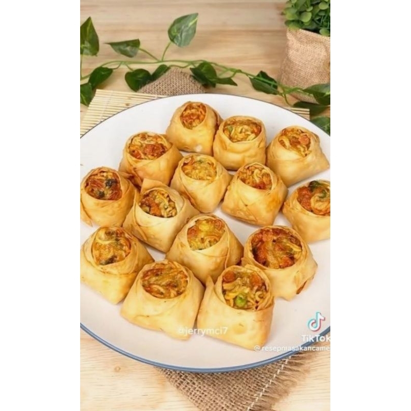 Mie Mangkok Lumpia adalah camilan kreatif yang menggabungkan kulit lumpia renyah dengan isian mie yang gurih. Hidangan ini biasanya dibuat dengan cara membentuk kulit lumpia menyerupai mangkok kecil, lalu diisi dengan mie instan yang sudah dibumbui dan dicampur dengan bahan tambahan seperti sayuran, dan telur