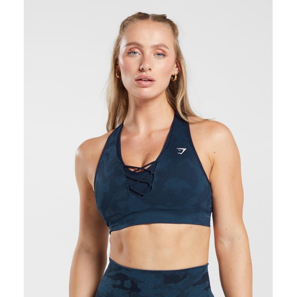 Gymshark Бесшовный спортивный бюстгальтер в рубчик Adapt Camo Blue Ash Blue B6A2G UCDW XS