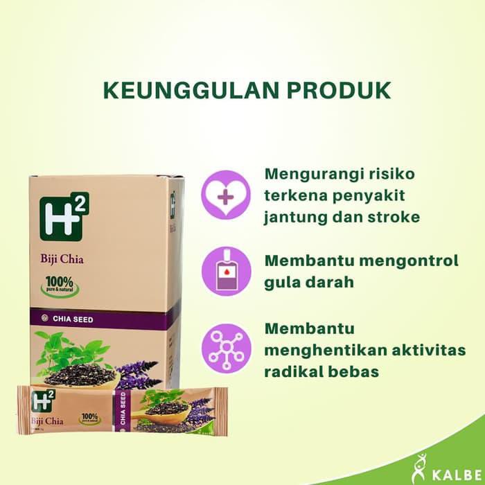 H2 Biji Chia adalah biji-bijian dari tanaman eksotis Salvia hispanica L. berkualitas yang dibudidayakan di Amerika tengah. H2 biji chia tidak melalui proses teknologi sehingga membantu menyediakan nutrisi yang baik karena mengandung protein, serat pangan, vitamin B3 (Niasin), calcium, fosfor.
