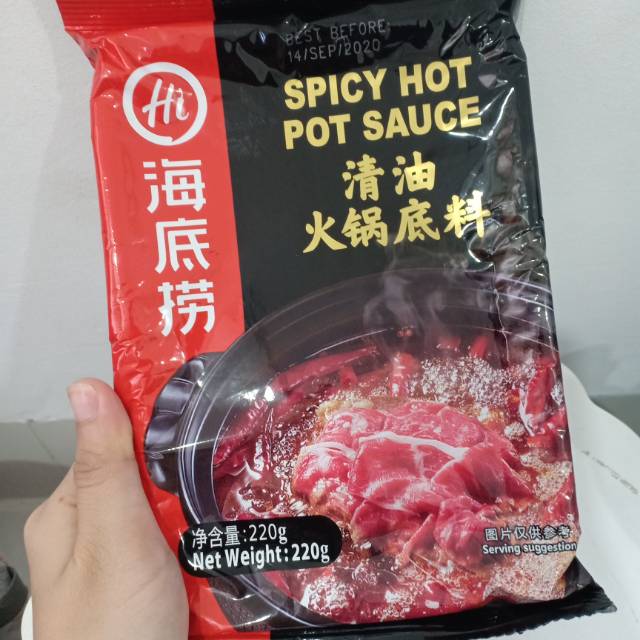 Bumbu dapur instant merk hai di lao dengan rasa pedas. Tidak hanya untuk hot pot saja, tetapi bisa digunakan juga untuk menggoreng atau soup.