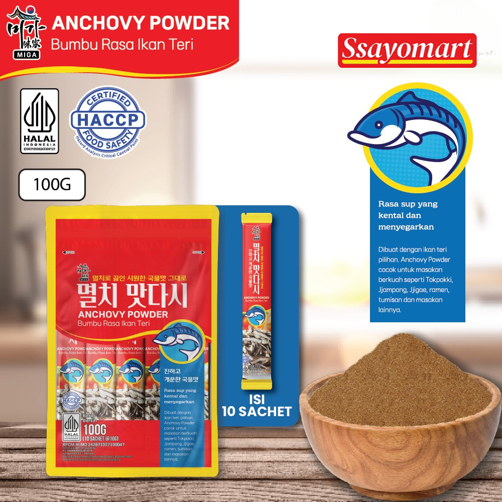 ANCHOVY POWDER dari MIGA dibuat dengan ikan teri pilihan. Anchovy powder cocok untuk masakan berkuah seperti Tokpokki, Jjampong, Jjigae Ramen, tumisan dan masakan lainnya.