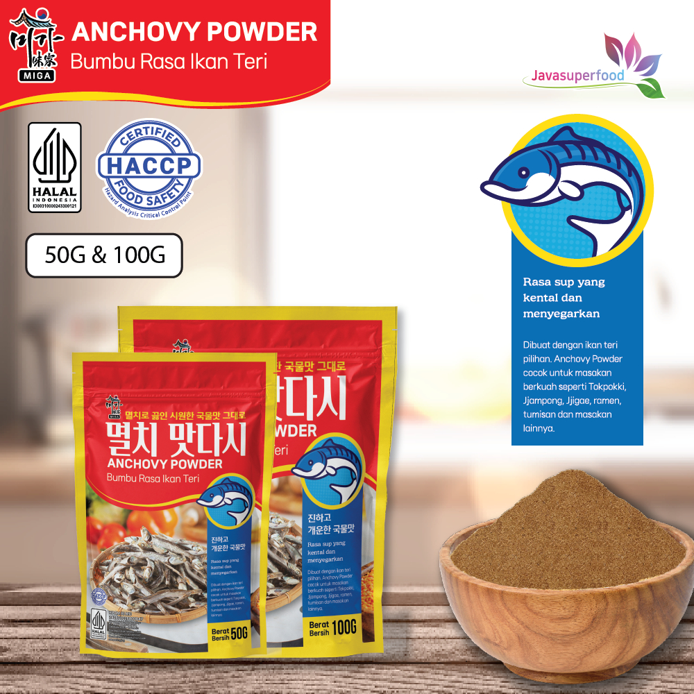 ANCHOVY POWDER dari MIGA dibuat dengan ikan teri pilihan. Anchovy powder cocok untuk masakan berkuah seperti Tokpokki, Jjampong, Jjigae Ramen, tumisan dan masakan lainnya.