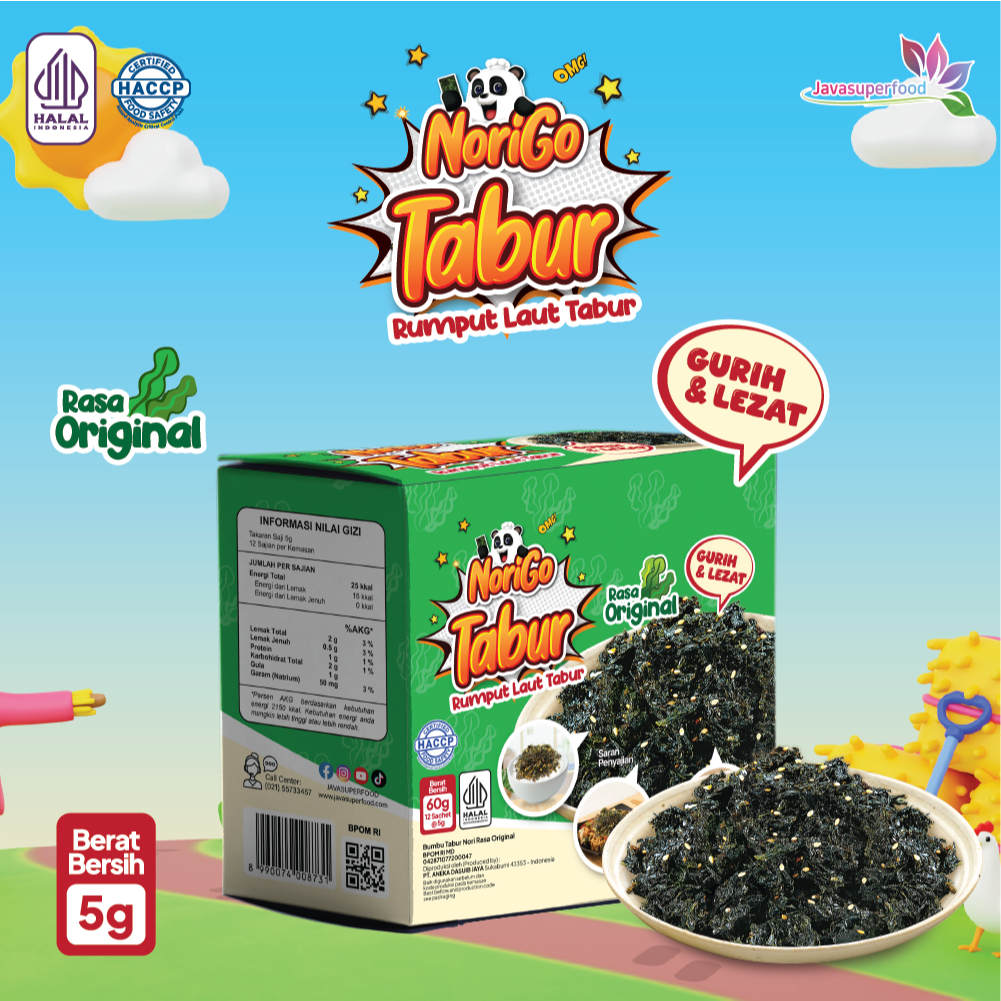 Norigo Seaweed Flakes adalah potongan rumput laut dengan bahan pilihan yang digunakan sebagai taburan (topping) atau tambahan rasa pada makanan yang cocok dijadikan teman ngemil setiap aktivitas, seperti menonton tv, belajar atau bersantai.