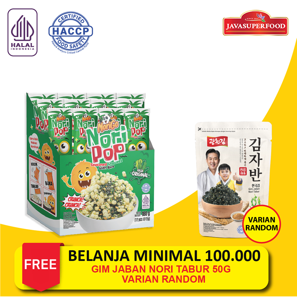 Norigo menghadirkan Nori Pop yaitu nori tabur yang merupakan potongan rumput laut panggang berbagai rasa (Original, BBQ, Pedas) dengan taburan nasi yang krispi. Nori Pop praktis kamu nikmati dimanapun dan kapanpun sebagai taburan untuk pendamping makanan atau snack favorit.