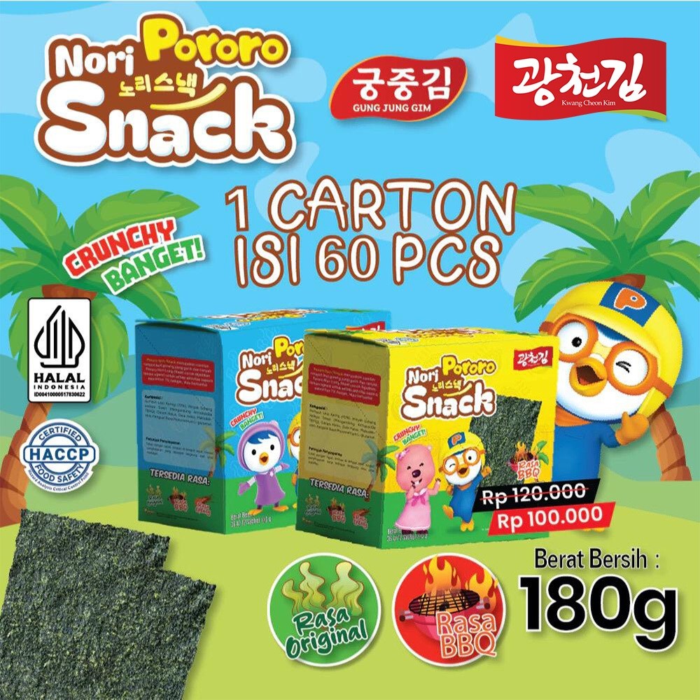 Pororo Nori Snack merupakan camilan rumput laut goreng yang gurih dan renyah.