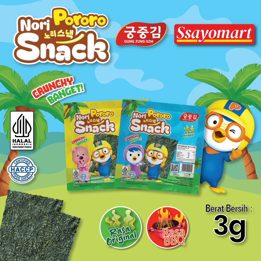 (HALAL) PORORO NORI SNACK SACHET / PORORO NORI SNACK / SNACK RUMPUT LAUT 3 GR