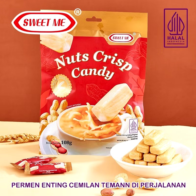 • NUTS CRISP CANDY (PERMEN ENTING-ENTING ORIGINAL BERBENTUK KOTAK RASA KACANG), MERK SWEET ME.