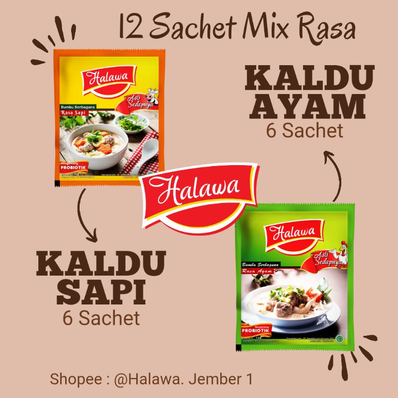 HALAWA MIX RASA ( 12 Sachet : Kaldu Ayam & Kaldu Sapi)