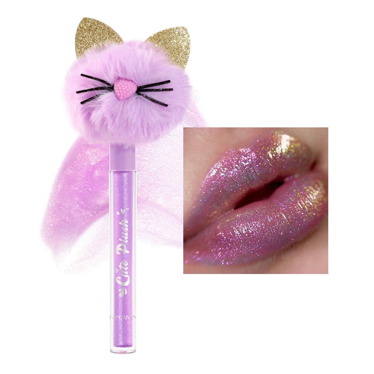 HANDAIYAN Зеркальный жемчужный блеск для губ Глазурь для губ кошачьей головы поляризованная плюшем для увлажнения блеска для губ 02