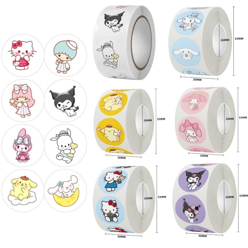 HAPPY (500 PCS) STIKER ROLL SANRIO DIY ROUND STICKER