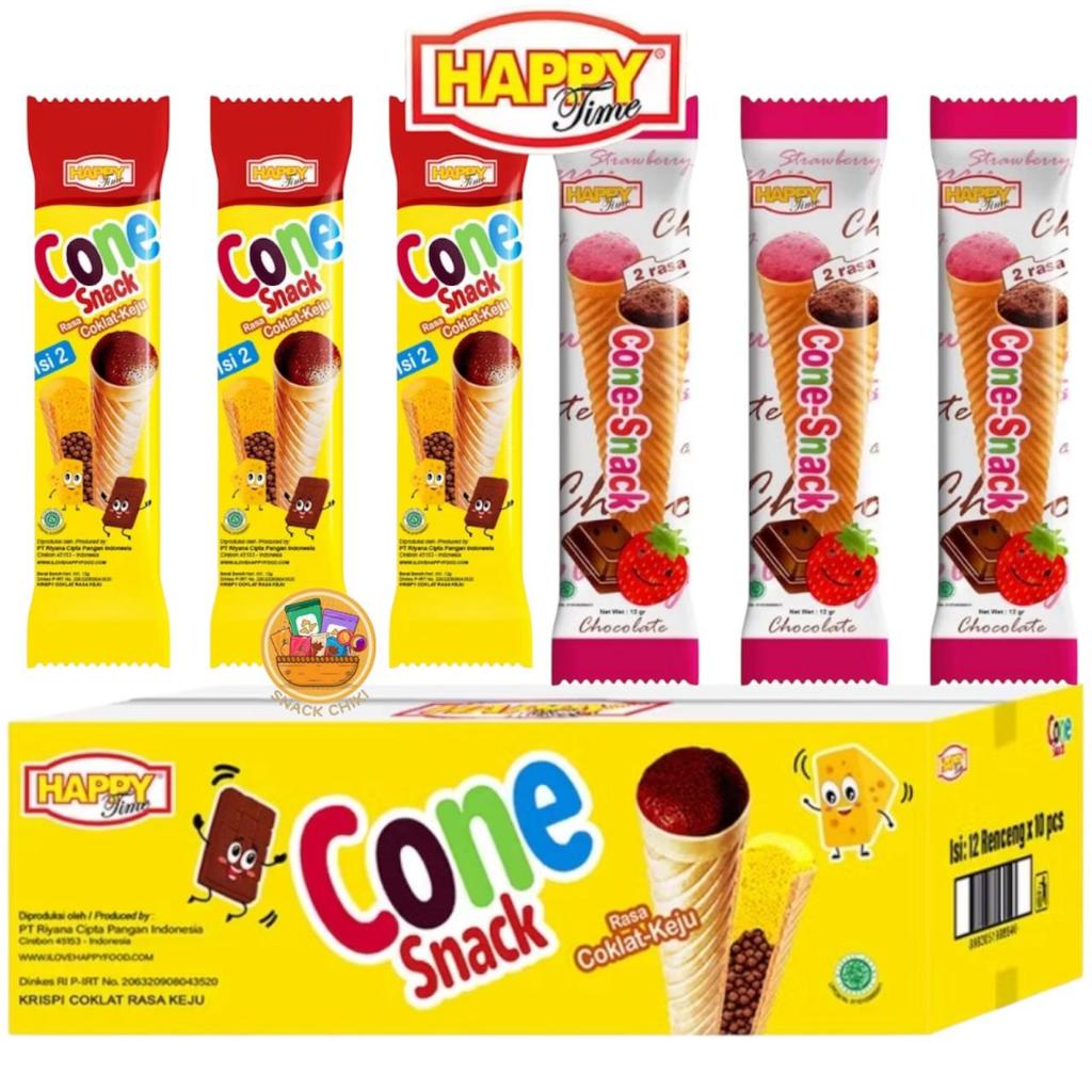 HAPPY TIME CONE SNACK RENCENG ISI 10 COKLAT KEJU / STRAWBERRY