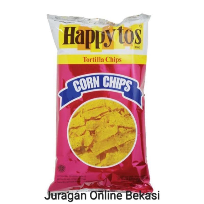 Happy tos adalah snack atau makanan ringan berbentuk keripik, happy tos terbuat dari biji jagung pilihan yang diolah dengan teliti dan digoreng dengan minyak kelapa sawit bermutu. Dengan bahan dasar jagung, snack ini mempunyai rasa gurih dan asin. Happy tos juga selalu di cari dikalangan masyarakat dengan teksturnya yang unik. Tidak hanya itu, aroma dari jagungnya yang sangat tajam serta warna keripik kuning kecoklatan dengan tekstur tidak rata dan ketika dirasakan benar - benar nikmat. Snack jagung happy tos cocok dinikmati saat santai bersama keluarga maupun saat bepergian rasanya yang renyah membuat Anda ketagihan. Selain itu, happy tos ini mempunyai beberapa varian rasa happy tos cron chip, tortilla chip, nacho chip dan roasted cord yang dapat memanjakan lidah Anda.
