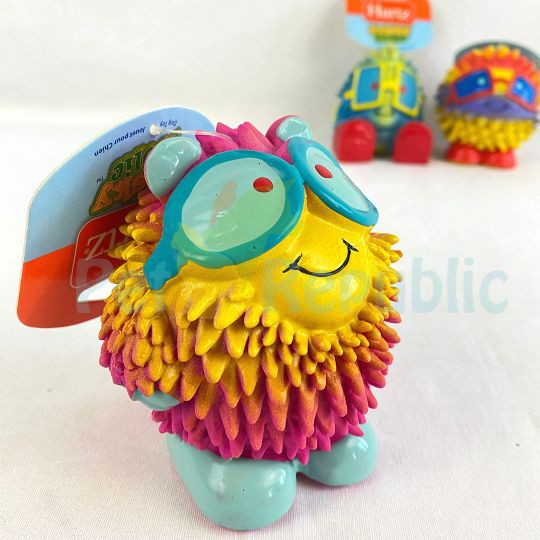 DescriptionHartz Frisky Frolic Latex Squeakable Dog Toy brings chewing, chasing and fetching fun to your pup. These charming characters are full of color and attitude, taking cool to a whole new level. Made from rugged latex material, these toys are made to last. Their textured surface provides a fun and stimulating chew experience. Great for hours of indoor or outdoor play.Key Benefits Squeakable toy that's great for chewing, chasing and fetching Made from rugged latex material for a durable, long lasting toy Textured surface for a fun and stimulating chew experience Great for indoor and outdoor play A fun, colorful toy for dogs of all ages and sizesCautionsAs with any pet toy, always supervise your pet while playing.Special NoteShips in a variety of random and fun colors!