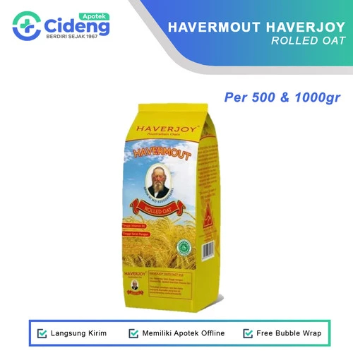 Deskripsi : Haverjoy Rolled Oats dibuat dari butiran utuh Oat Australia yang dipipihkan tanpa mengandung bahan tambahan pangan seperti pengawet atau penyedap rasa. Nikmati manfaat alami Oat yang tinggi Vitamin B1 dan Serat Pangan, yang dapat membantu mengontrol kadar kolesterol dalam darah, lemak jenuh dan berat badan