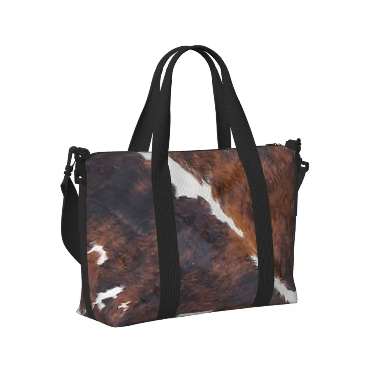 Custom Stylish Cow Fur Cowhide Texture Cow Skin Print Patter Beach Travel Bag Tote Bags Women Shopping Duffle Shoulder Bag