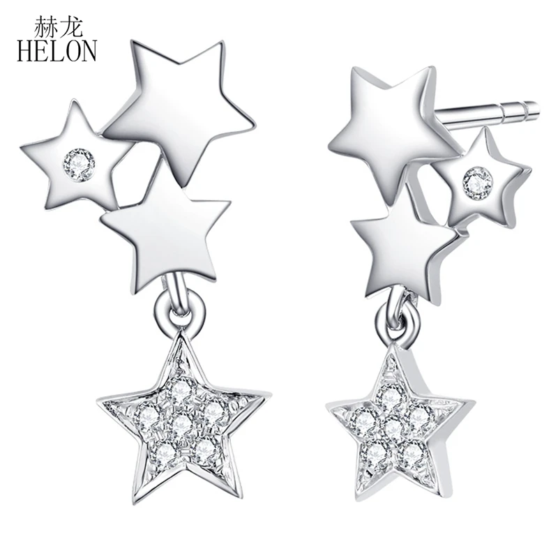 HELON Реальные 18k 14k белые золотые серьги с муассанитом серьги-гвоздики "Звёзды" женские серьги модные с подлинными серьгами в подарок
