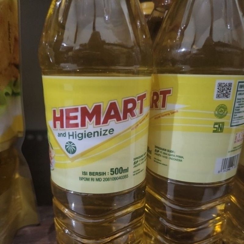 Minyak goreng sawit HEMART 500 ML kemasan botol.