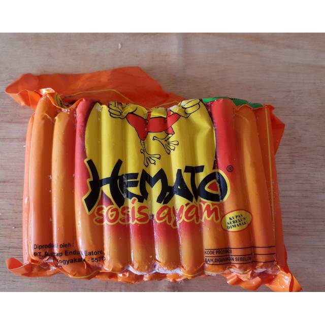 Produk Olahan daging dari HEMATO dengan bentuk sosis yang tersedia dalam kemasan beku (frozen) dengan berat 1 kg.