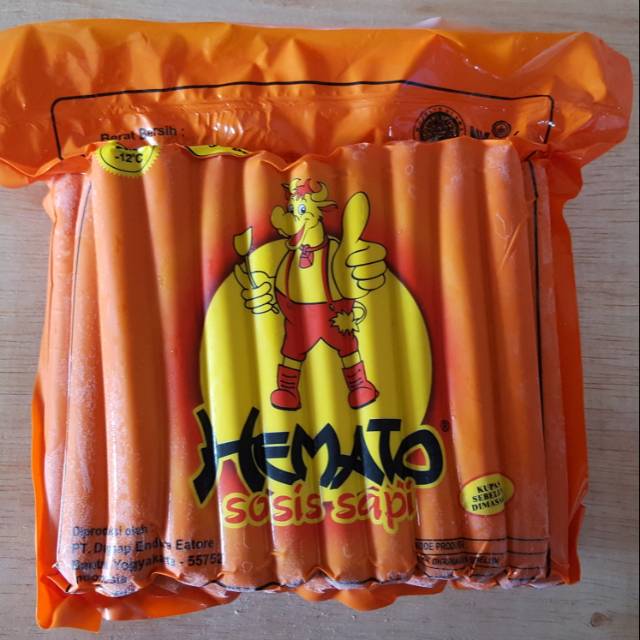 Produk Olahan daging dari HEMATO yang mempunyai bentuk sosis sapi yang tersedia dalam kemasan beku (frozen) dengan berat 1 kg .