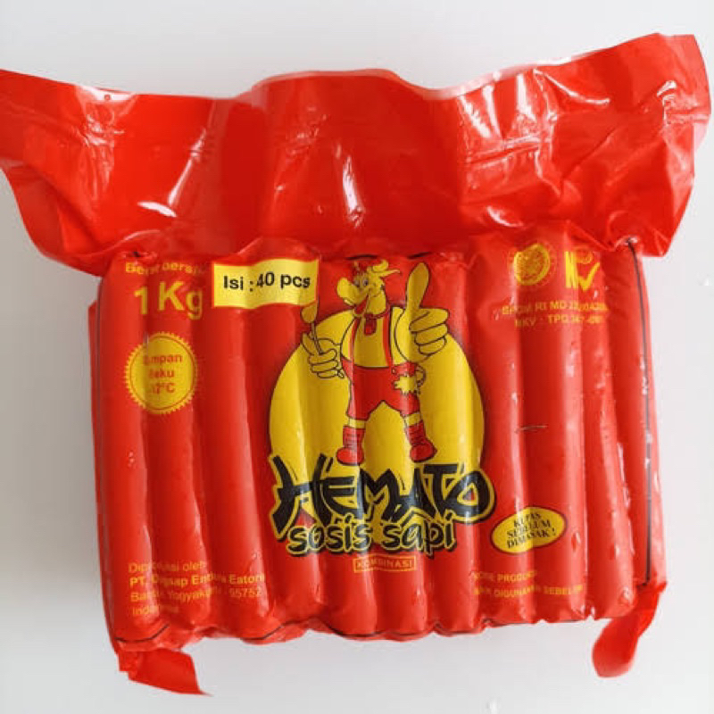 Hemato sosis sapi 1 kg, salah satu naget terlaris di pasaran dengan harga terjangkau dan rasa yang dijamin lezat.