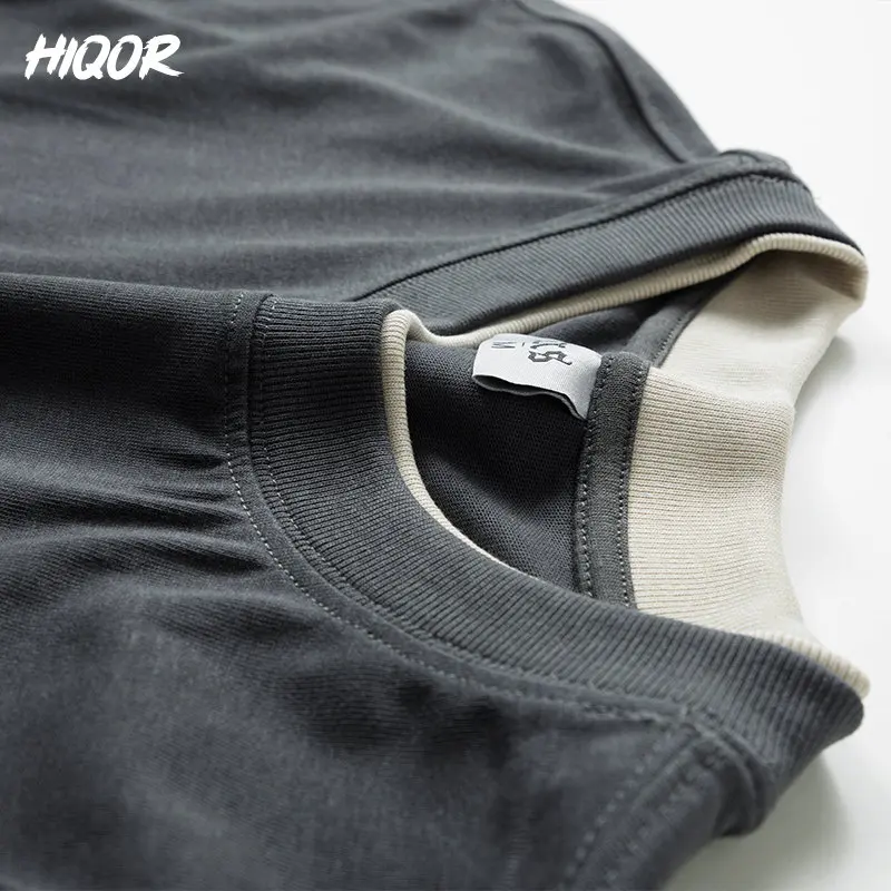 HIQOR 2023 повседневные футболки из двух частей Свободные Модные 100% хлопковые повседневные Модные топы для улицы Мужская футболка в японском стиле серая