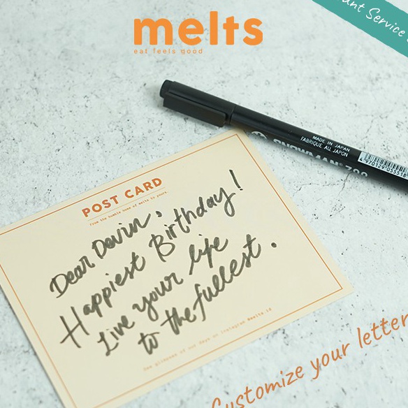 290624 | SP MELTS INSTANT SERVICE Tersedia GRATIS ONGKIR di "meltscookies" Collaterals Set for Melts Gift ! 3 set of Cards berisi : - Recipe ideas untuk melts product - Product info - Include Custom penulisan yang dapat kamu request untuk ditulis tangan oleh team kami. (detail terdapat di slide 2 foto) *set kartu dilengkapi dengan sleeve kalkir Dengan tambahan collateral set , pesananmu akan lebih mengesankan dan cocok untuk jadi hadiah ! Important Info Untuk Custom Card dapat di isi Dear dan From & bersifat WAJIB tulis di notes sebelum check out. Contoh : Notes : "Hi devin ! Happy Graduation , stay safe and stay healthy !" Jika tidak ada tulisan apapun di notes, kami akan kirimkan Kartu ucapan saja tanpa tulisan. Dikarenakan pesanan tanpa notes tidak akan muncul apapun di dalam resi, dan packer tidak akan tau pesan custom anda. Happy Shopping and happy Giving ! MOHON DI PERHATIKAN (MEMBELI = SETUJU) 1. Pesanan sudah kami QC baik jumlah maupun kualitas, (kasih note pilihan warna alternatif, jikalau kosong kami akan memberitahukan melalui fitur chat dan kami tunggu respon 1X24 jam, tidak ada respon chat maka warna akan kami ganti dengan warna yg mirip/ random) 2. Kerusakan/kehilangan paket dlm pengiriman diluar tanggung jawab kami (bisa klaim langsung ke pihak kurir yg di pilih) 3. Di tunggu order berikutnya ajakin temen dan keluarga ya! 4. Terima kasih. ~~>>>> Kepuasan pelanggan adalah tujuan utama kami >>>>> Terima Kasih Atas Kunjungan Anda RESELLER & DROPSHIPER WELCOME